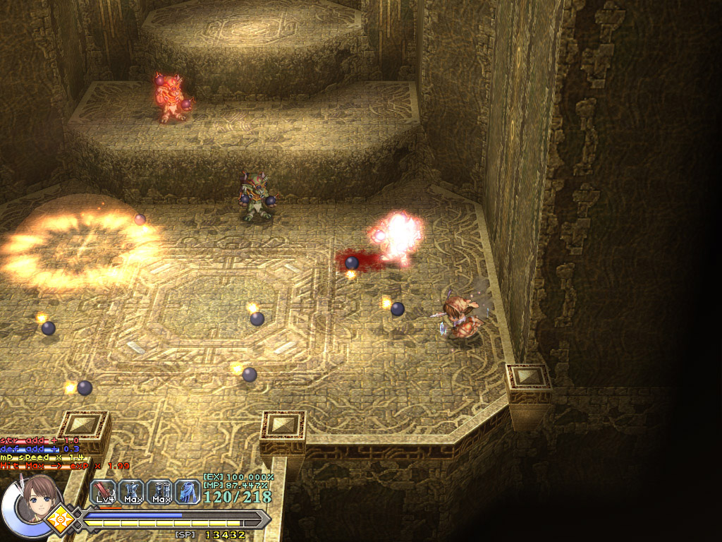 The game takes place in the very same tower that Adol visits in Ys I... but in a much more, uh, "pristine" condition 700 years prior. Using the engine from The Ark of Napishtim for the third and final time, Falcom put together another grand platforming adventure. As with both Napishtim and Felghana, there are several different types of terrain to visit, ranging from your normal stone-type dungeon, to a desert, and even to an underwater area. Each area of the tower has several floors of the same style before graduating on to the next, working your way to the top. It may not feel as grandiose compared to the places you've been to as Adol, but it has its own unique charm.