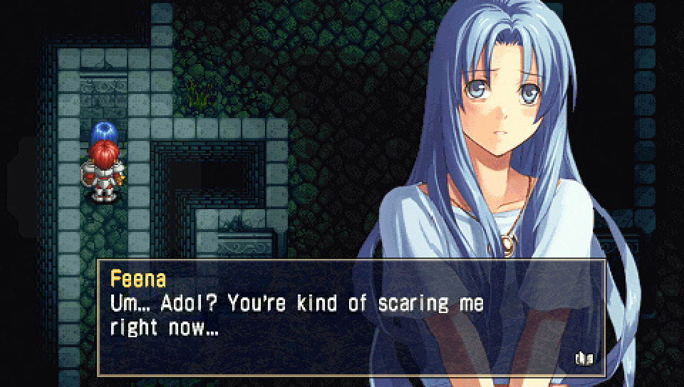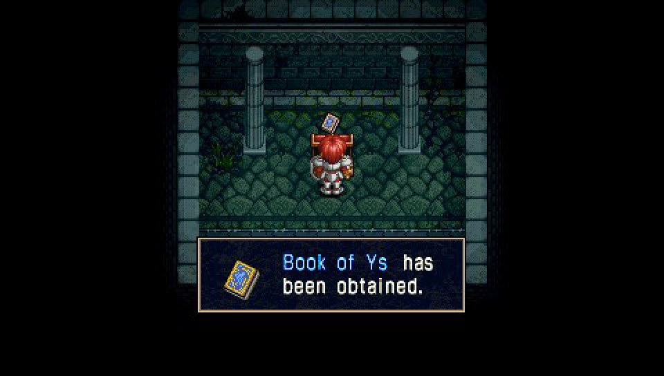 Ys I & II breaks the fourth wall with its narrative and game mechanics. They go hand-in-hand. For example, the first game has a level cap of 10. Why? Isn't that low for a role-playing game? Ys I is split into two major parts. The goal of the first half of the game is for Adol to become a confident fighter. If Adol is not at level 10 by the time he begins the second half of the game, he is not ready (note: other Ys games have a much higher level cap of 50+). Another example of breaking the fourth wall is why Adol doesn't speak. The Ys series is based on journals written by Adol's hand. When people write a journal, they discuss their experiences and the people who they've met. They rarely describe their own voice. Why would they? One of my favourite Ys quotes: