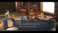 The one thing you may notice is that certain graphical elements were originally created as small, 2D objects that have now been stretched for larger resolutions. For example: In earlier 3D video games, some trees were flat graphics that continued to rotate infinitely to face your camera. This technique was often used on N64 and GameBoy Advance to simulate objects in a 3D environment. Some background elements in Ys Seven were designed similarly, such as boats out in distant water, pots and pans in a store, or newspapers on a wall... all the negligible stuff. Since the PSP screen was much smaller, these 2D graphics blended well. Now that they are increased to high definition, the results are quite noticeable. While gaming, most players won't care. We're not here to admire pots and pans. We're here on an adventure!