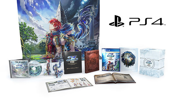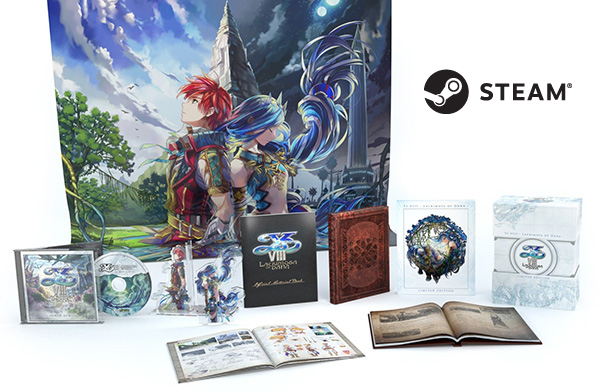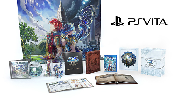 Exclusive to the NIS America Online Store, each version (PS4, Vita, PC) of the Limited Edition was exactly the same with the exception of the game itself. It included a Collectible Box, The Codex of Adol Christin: Periplus of the Goethe Sea Writing Materials (Hardcover Book), Softcover Art Book, Soundtrack CD, Acrylic Bookends, 33" x 40" Cloth Poster, and Steelbook Collector's Case for PS4 (same across all Limited Editions). The PS4 Limited Edition came with the Day One Edition game, the Vita Limited Edition came with the standard Vita game, and the PC Steam version came with a download key which is emailed to the buyer. Since the PC version was delayed several months, keys were not emailed until the game was ready to be released.